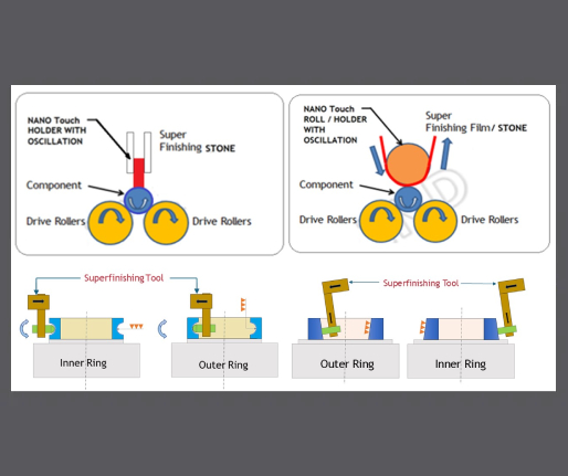 - Applications: Superfinishes the Outer Diameter (OD) of rollers (cylindrical, taper) and pins.